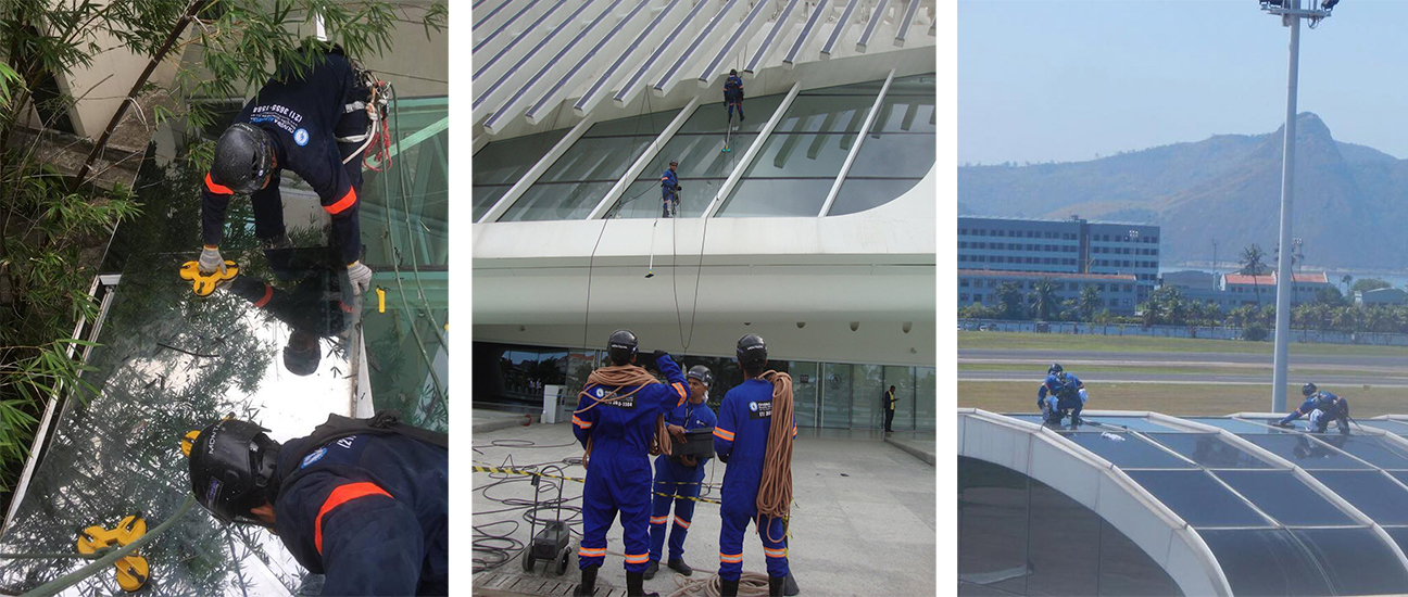 Os colaboradores da nossa empresa de alpinismo industrial trabalham com agilidade, de forma confortável e segura, evitando o incômodo do uso de andaimes na fachada e seguindo a tendência de verticalidade das grandes cidades.